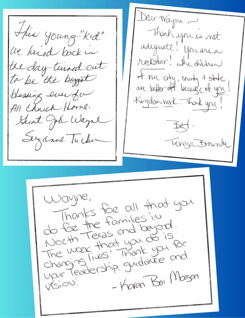 On June 3, many long-time supporters of ACH gathered to congratulate Wayne on his exemplary service to children, families, and our community (view photos below). See what many of them said in videos, written notes, and a letter from Fort Worth Mayor Mattie Parker. But first, read what this milestone means to Wayne Carson himself.